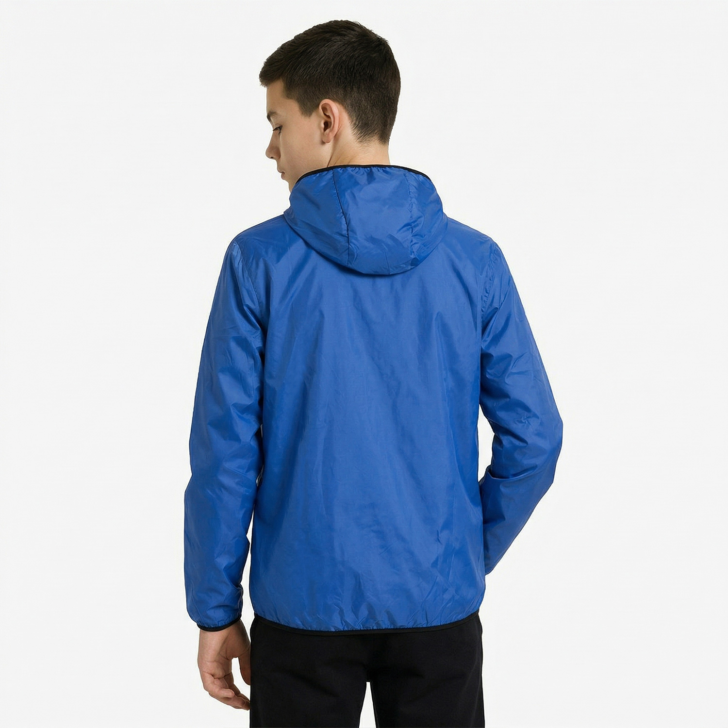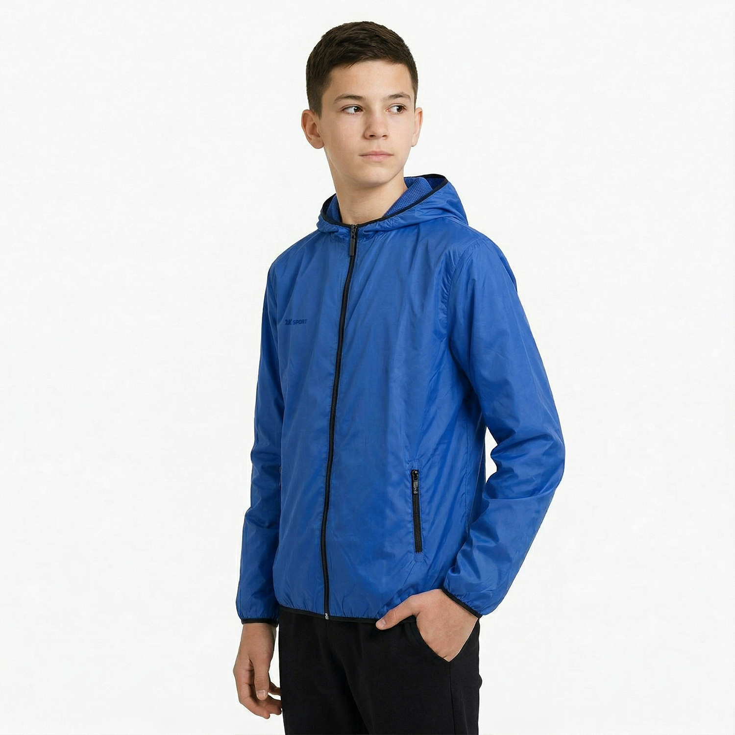 Модель для тренировок и повседневного использования, выполнена из прочной нейлоновой ткани. Внешний слой влагонепроницаемый. Подкладка сетчатая (100% полиэстер), внутренняя часть рукавов — из гладкой таффеты. Застёжка-молния сквозная. Капюшон, манжеты и низ обработаны эластичной тесьмой. Боковые карманы на молнии.