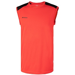 Тренировочная майка без рукавов. Модель выполнена из легкой ткани типа интерлок, для оптимальной вентиляции по бокам размещены боковые вставки из сетчатой ткани. Майка с классическим воротом.