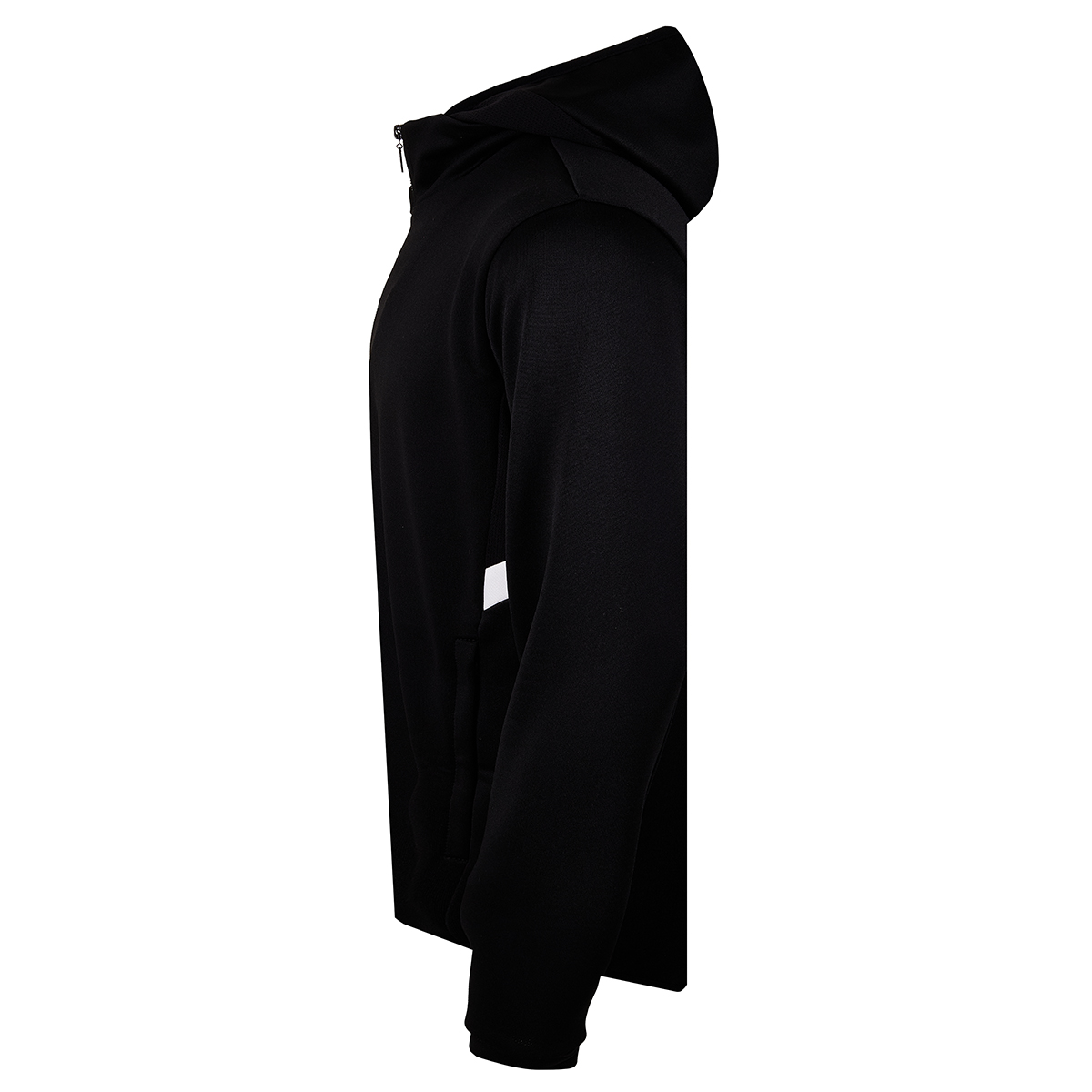 Худи тренировочное для активных видов спорта. Модель выполнена из мягкой и легкой ткани с водоотталкивающей обработкой. Ткань имеет высокую прочность и несминаемость, удобна в уходе. Сетчатые вставки повышают вентиляционные свойства. Капюшон с окантовочной тесьмой имеет подкладку. Модель с застежкой на молнии во всю длину. Боковые карманы на молнии.