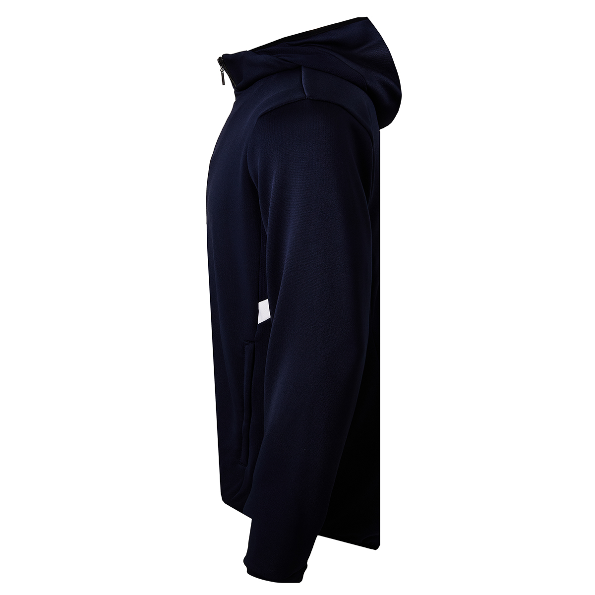 Худи тренировочное для активных видов спорта. Модель выполнена из мягкой и легкой ткани с водоотталкивающей обработкой. Ткань имеет высокую прочность и несминаемость, удобна в уходе. Сетчатые вставки повышают вентиляционные свойства. Капюшон с окантовочной тесьмой имеет подкладку. Модель с застежкой на молнии во всю длину. Боковые карманы на молнии.