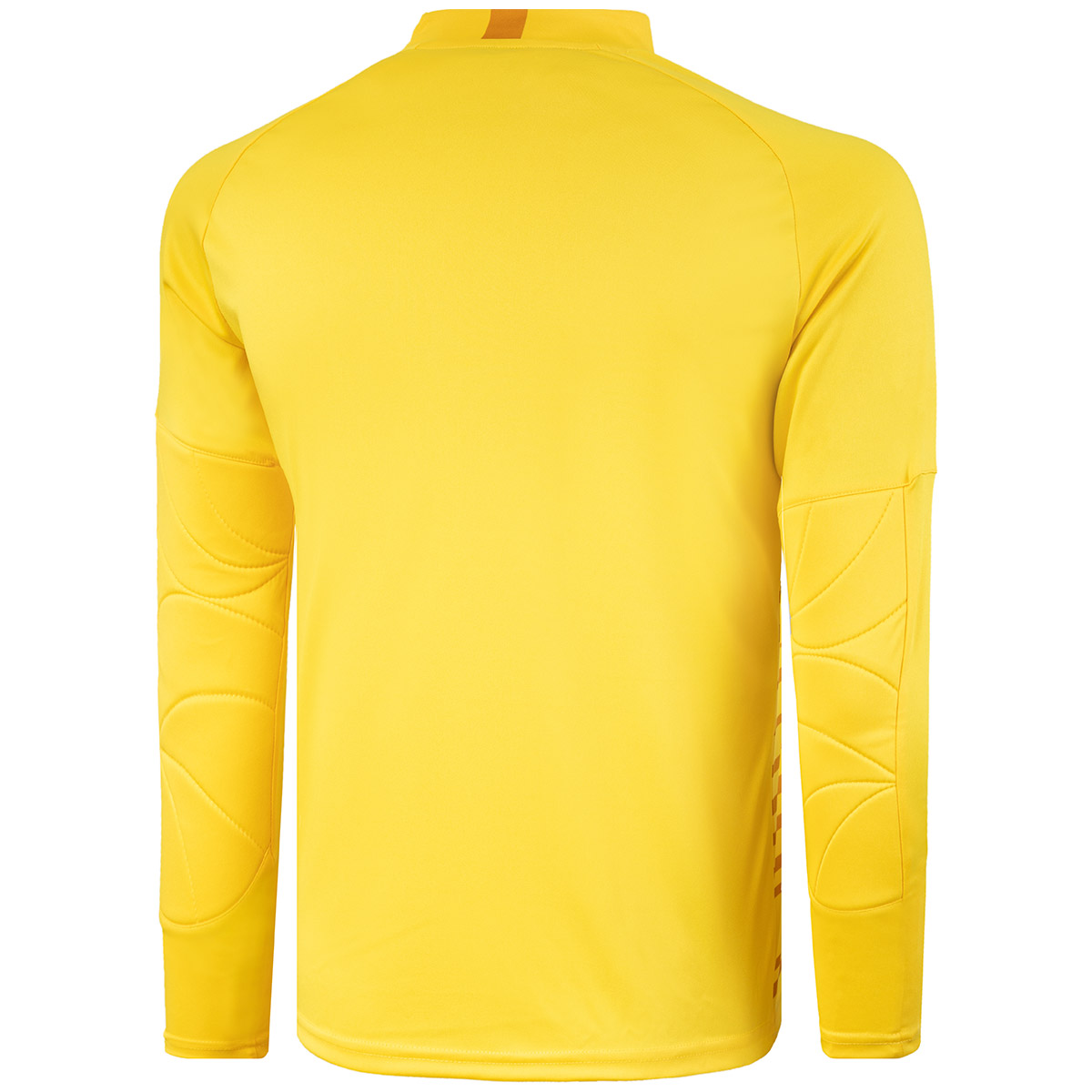 Яркая модель для голкипера, создающего сэйвы. Изготовлена из износостойкой ткани типа интерлок, учитывающей контакты и падения на газон. Прямой крой и рукав реглан для сводных движений. Сублимированный ворот-стойка, имеющий с внутренней стороны эластичную окантовочную тесьму, предназначенную для предотвращения натираний и комфорт при надевании. На локтях расположены специальные амортизирующие вставки, которые защищают от повреждений при падениях. Эластичный PVC шеврон Original Teamwear как финальный штрих.