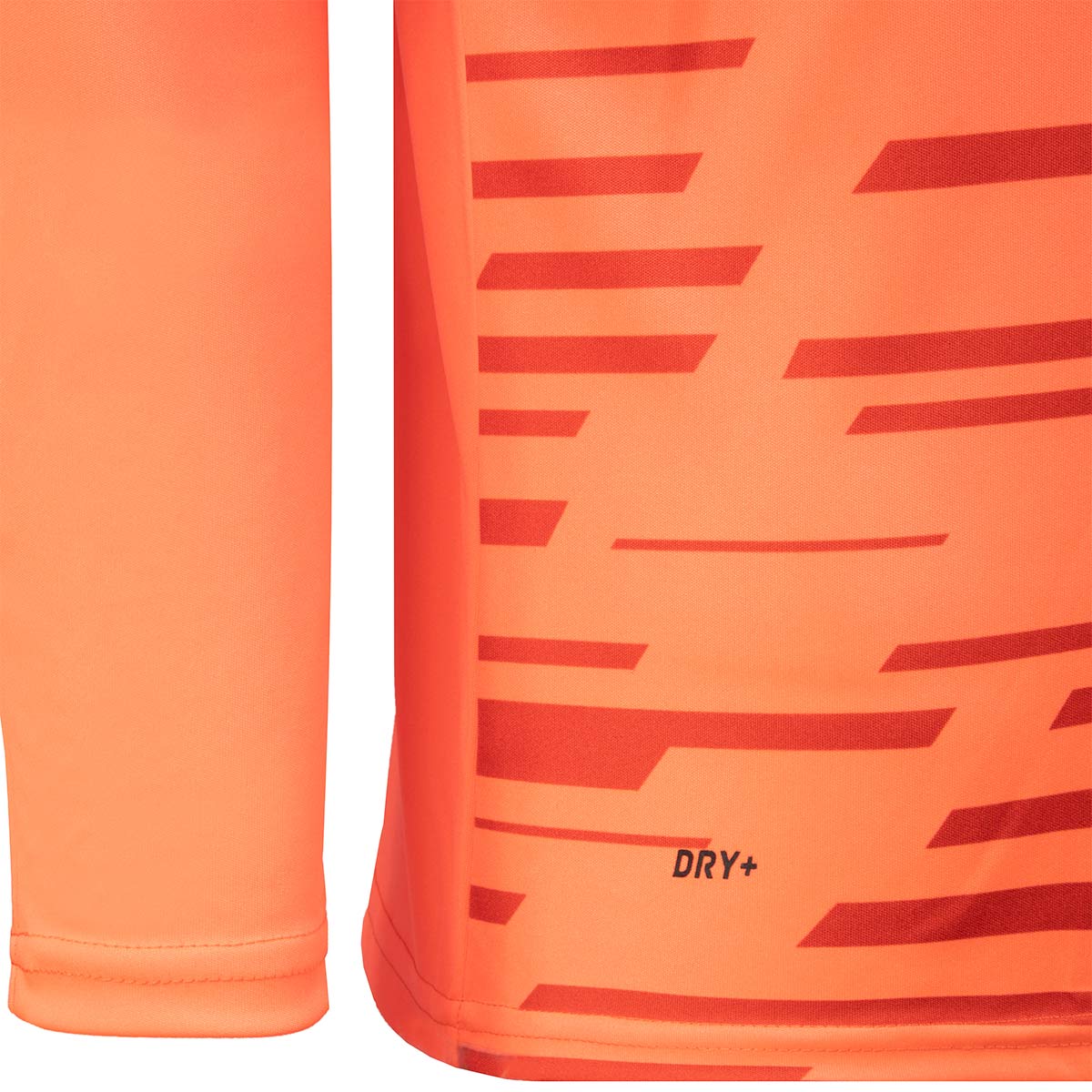 Джемпер выполнен из легкой ткани на основе высокотехнологичного полиэстера с технологией DRY+, позволяющая дольше сохранять комфорт при интенсивных нагрузках и обладающая отличной воздухопроницаемостью. Ткань приятная на ощупь и не требует специального ухода. Отличительный сублимационный паттерн в виде полос выделяют вратаря на поле. Микроволоконная конструкция DRY+ поддерживает естественную систему охлаждения тела, отводя и равномерно распределяя влагу по всей поверхности одежды для быстрого испарения.