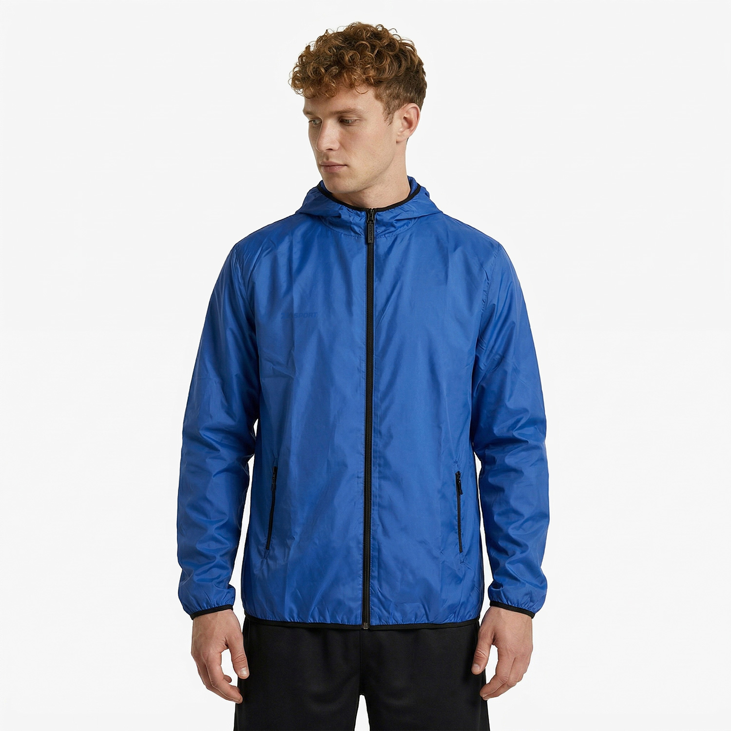 Модель для тренировок и повседневного использования, выполнена из прочной нейлоновой ткани. Внешний слой влагонепроницаемый. Подкладка сетчатая (100% полиэстер), внутренняя часть рукавов — из гладкой таффеты. Застёжка-молния сквозная. Капюшон, манжеты и низ обработаны эластичной тесьмой. Боковые карманы на молнии.