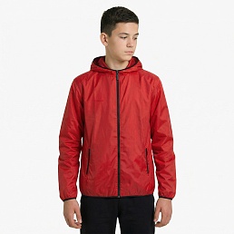 Модель для тренировок и повседневного использования, выполнена из прочной нейлоновой ткани. Внешний слой влагонепроницаемый. Подкладка сетчатая (100% полиэстер), внутренняя часть рукавов — из гладкой таффеты. Застёжка-молния сквозная. Капюшон, манжеты и низ обработаны эластичной тесьмой. Боковые карманы на молнии.