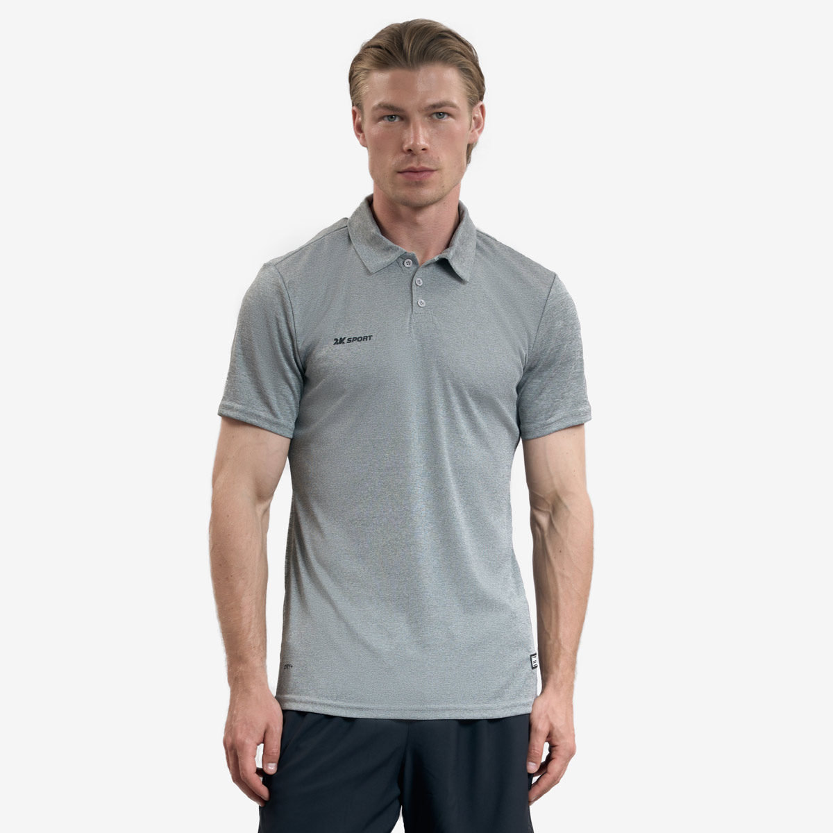 Поло классическое для спорта. Модель вылолнена из легкой и дышащей ткани типа катион. Ткань сочетает в себе прочность, износостойкость, и обладает приятными тактильными ощущениями. Благодаря технологии DRY+ поддерживается естественная система теплообмена тела, отводя и распределяя влагу для быстрого испарения. Поло проямого кроя. Воротник "стойка" дополнен тремя пуговицами.