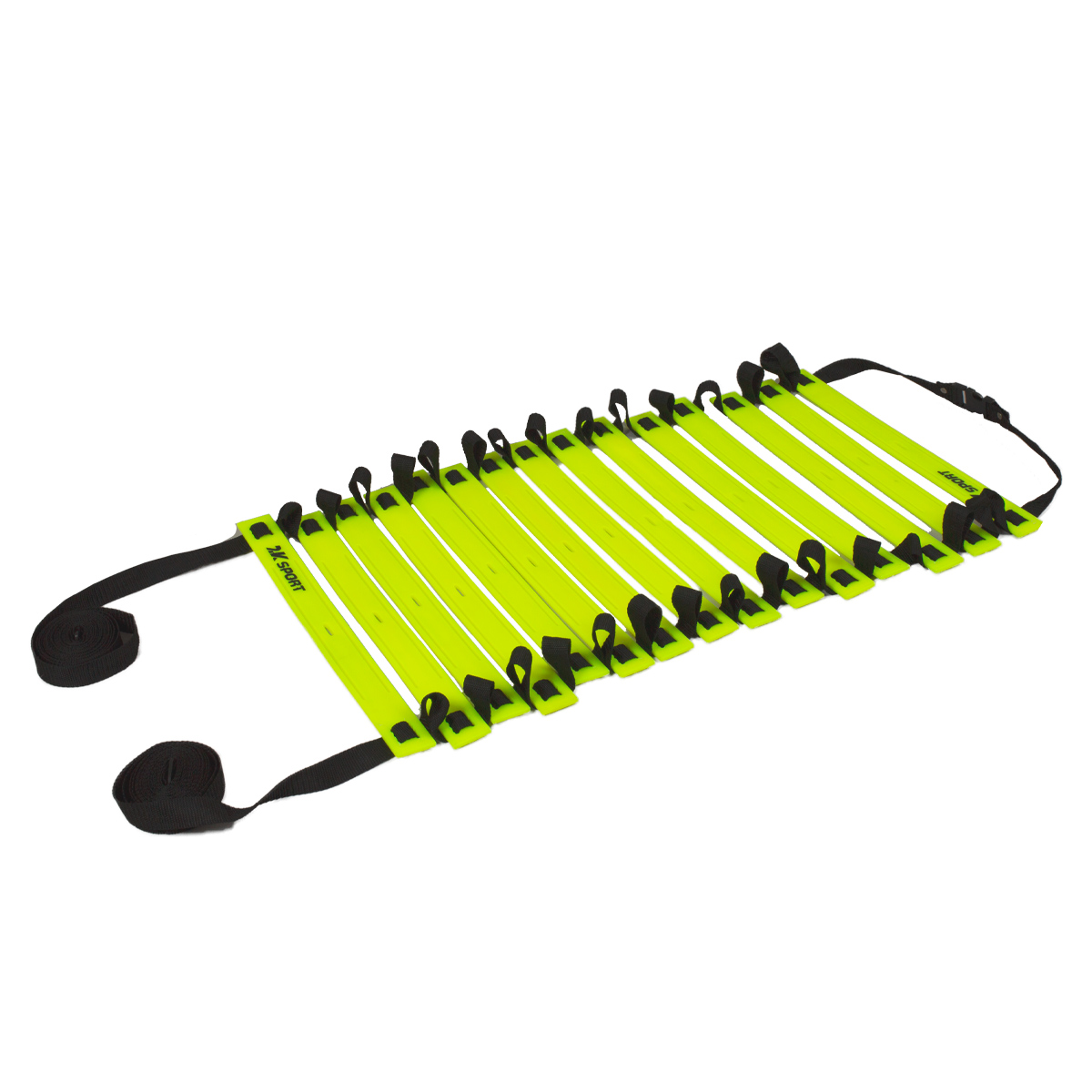 Раскладной тренажер «Лестница» координационный. Предназначен для отработки упражнений, направленных на ловкость и координацию. На лестнице расположено 15 регулируемых перекладин, что позволяет подобрать разную степень интенсивности упражнения.