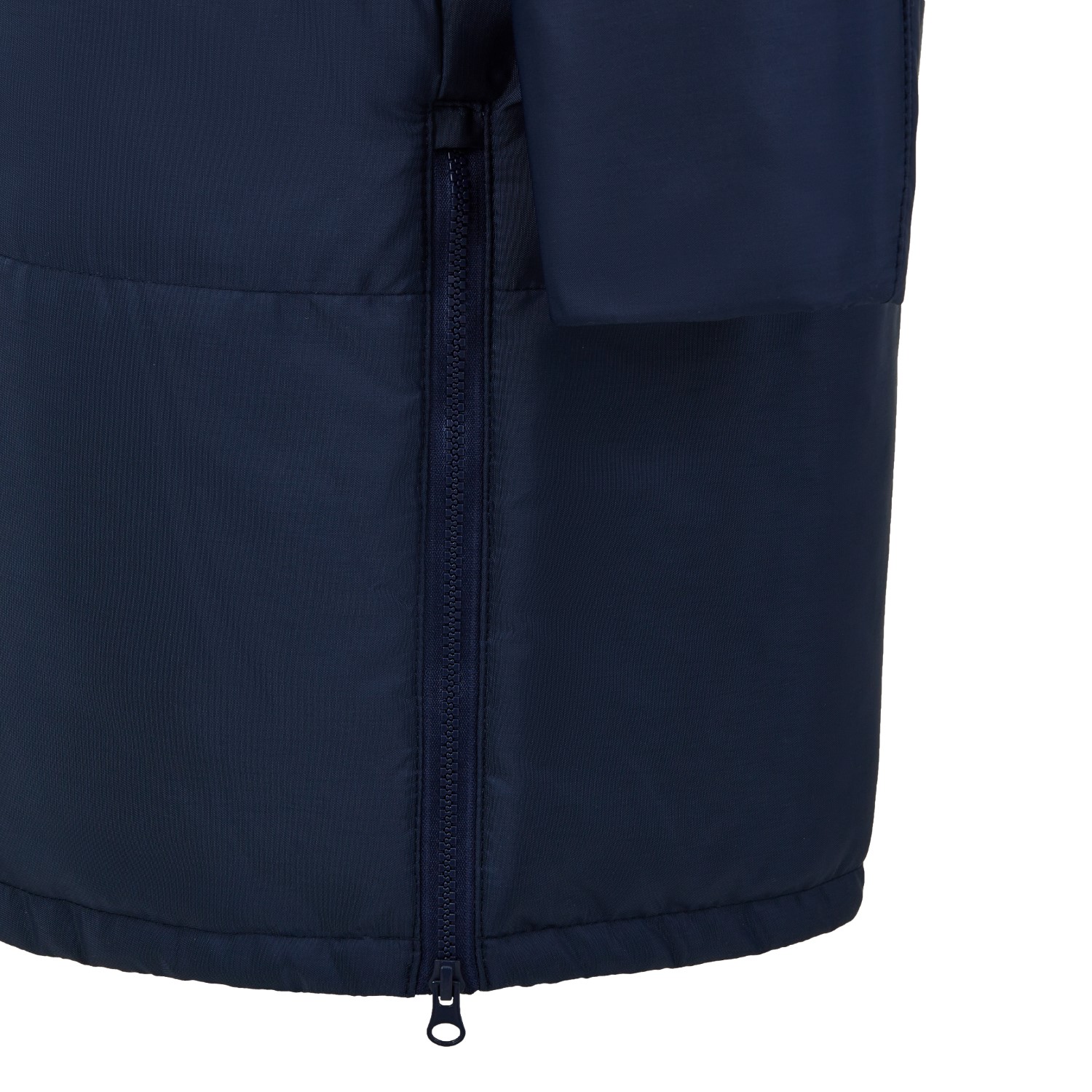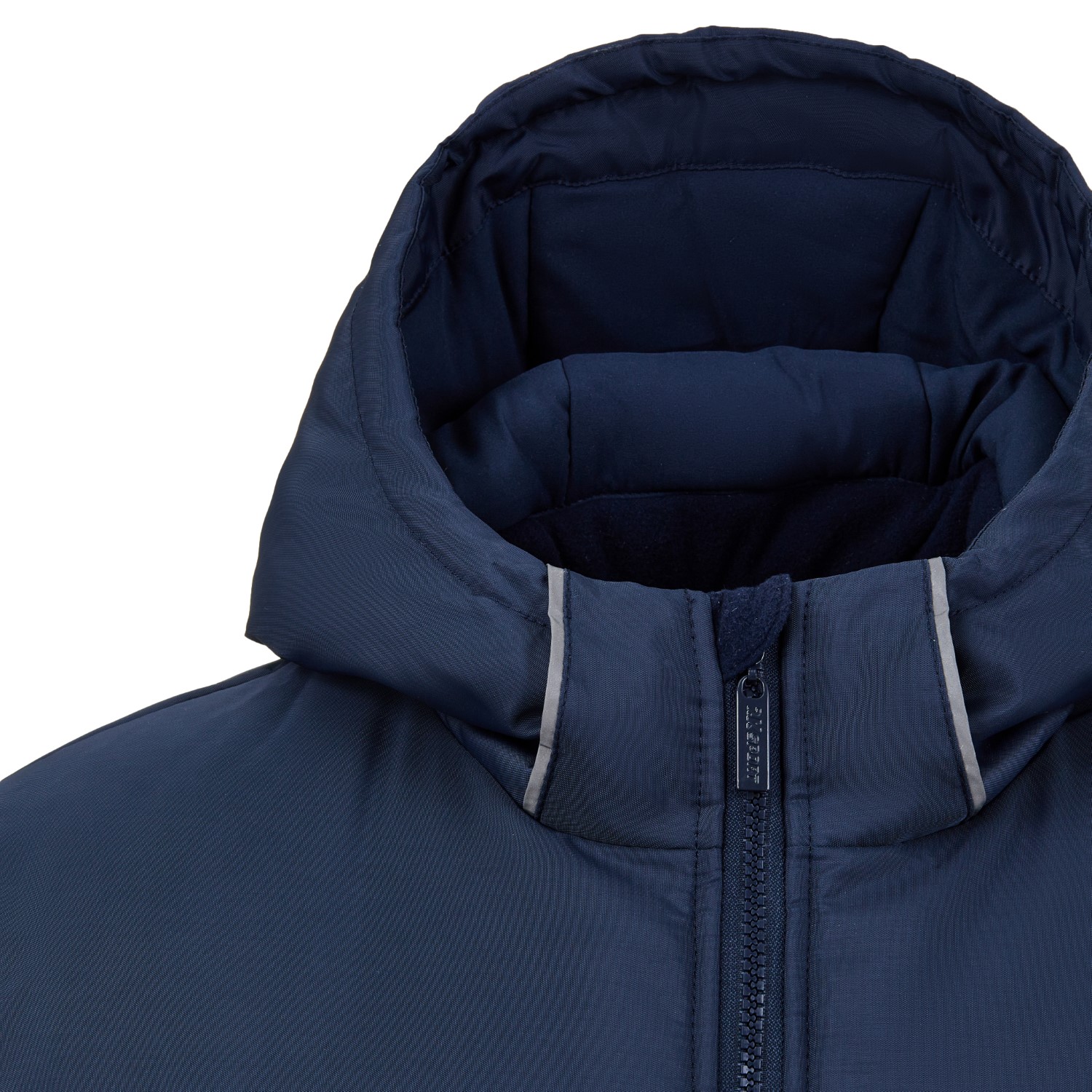 Два боковых кармана на молнии и внутренние на подборте. Над боковыми карманами расположены светоотражающие канты для безопасности в темное время суток. Несъемный регулируемый капюшон с утягивающими фиксаторами для индивидуальной посадки. Молния во всю длину оснащена специальной защитой для подбородка, выполненной из прочной ткани. Боковые регулирующие молнии. Низ куртки стянут шнуром-резинкой.